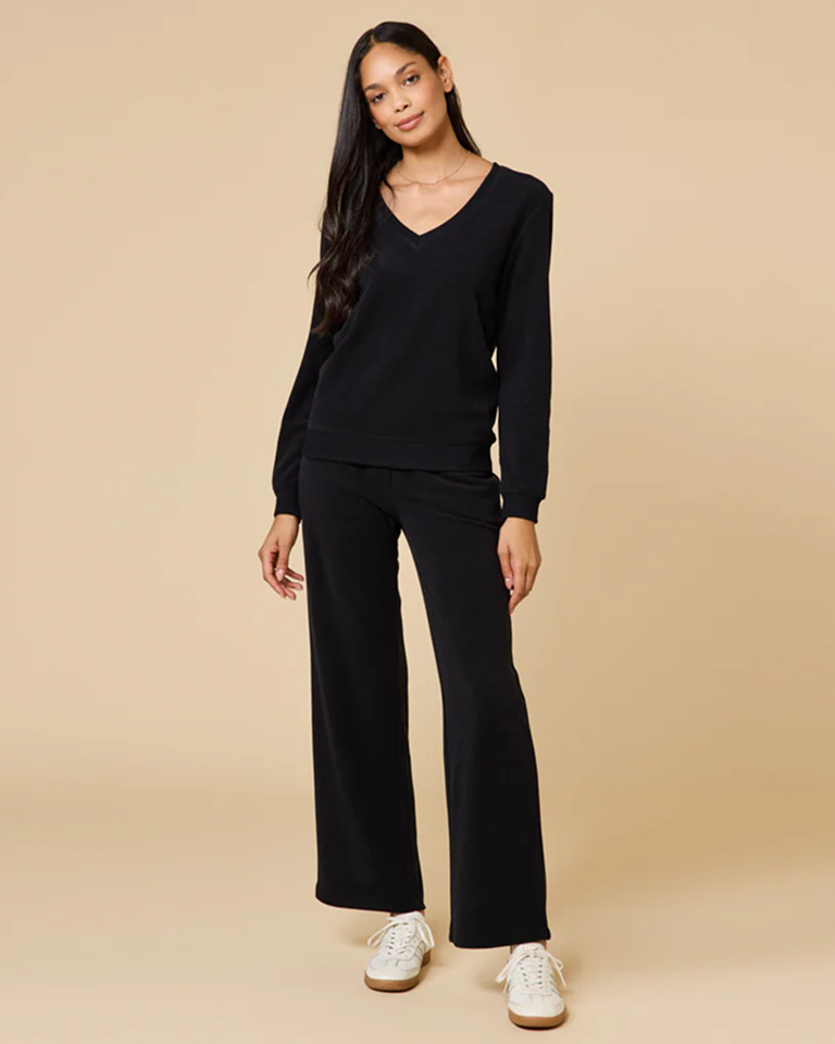 Wine poured, movie picked, and softness cozier than their favorite night in.